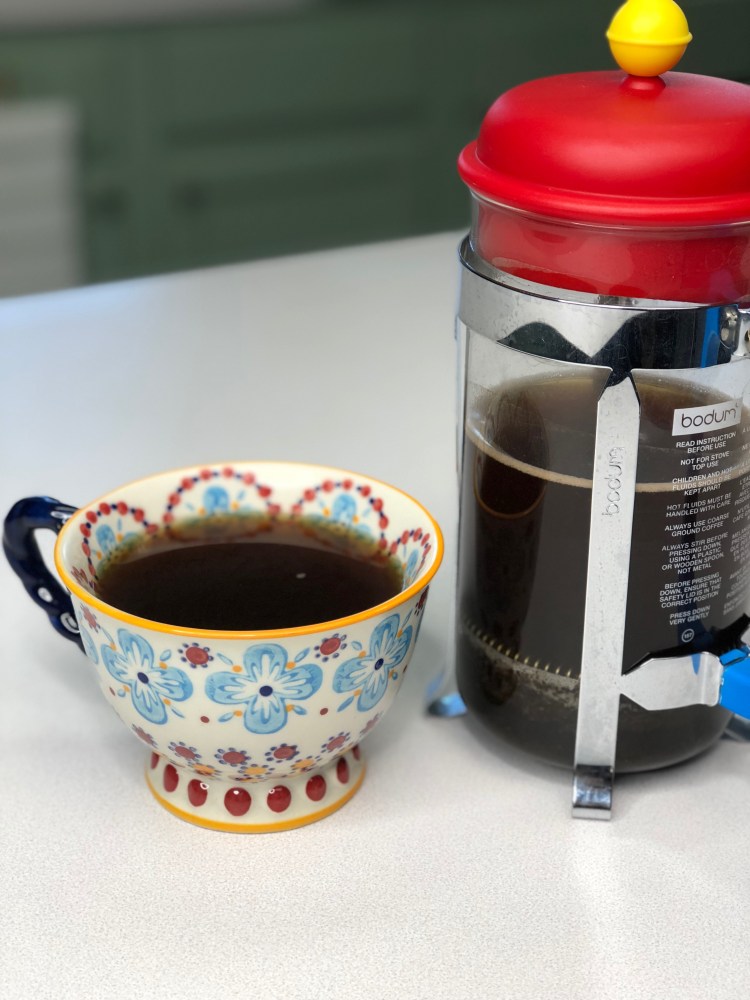 To get the most flavor from your morning cup of joe, with the least amount of chemicals/pesticides/herbicides, I recommend using a french press with organic coffee. Click here for my article on what to look out for when buying coffee, why, and the brand we choose. Watch the video for a more complete understanding of what each step does for upping the flavor profile, or follow the steps below.